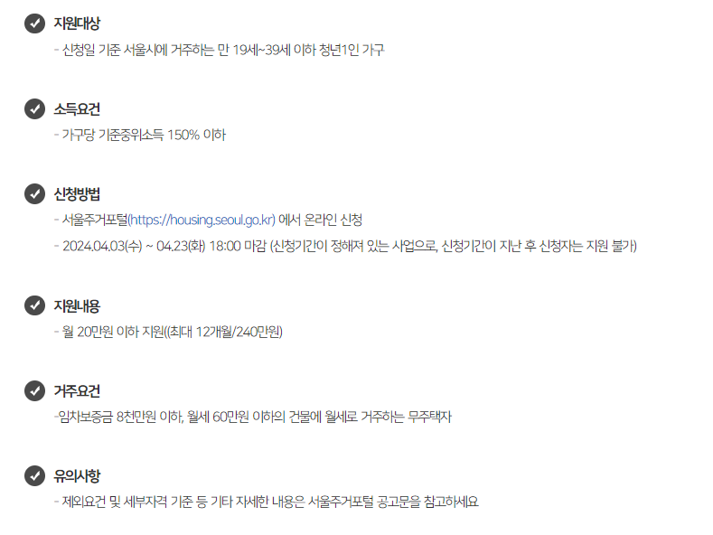 청년 월세 한시 특별지원은 일반적인 월세 지원금과 중복으로 받을 수 없는 경우가 많으니, 신청 전에 지원 조건을 꼼꼼히 확인해야 합니다.