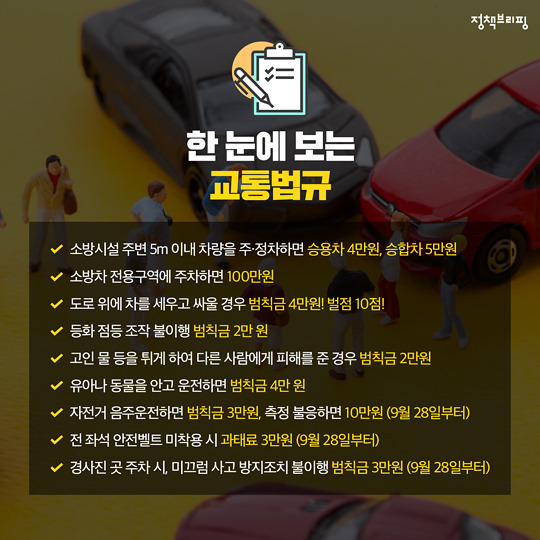 - 전 좌석 안전벨트 미착용 시 과태료 3만원(9.28시행)