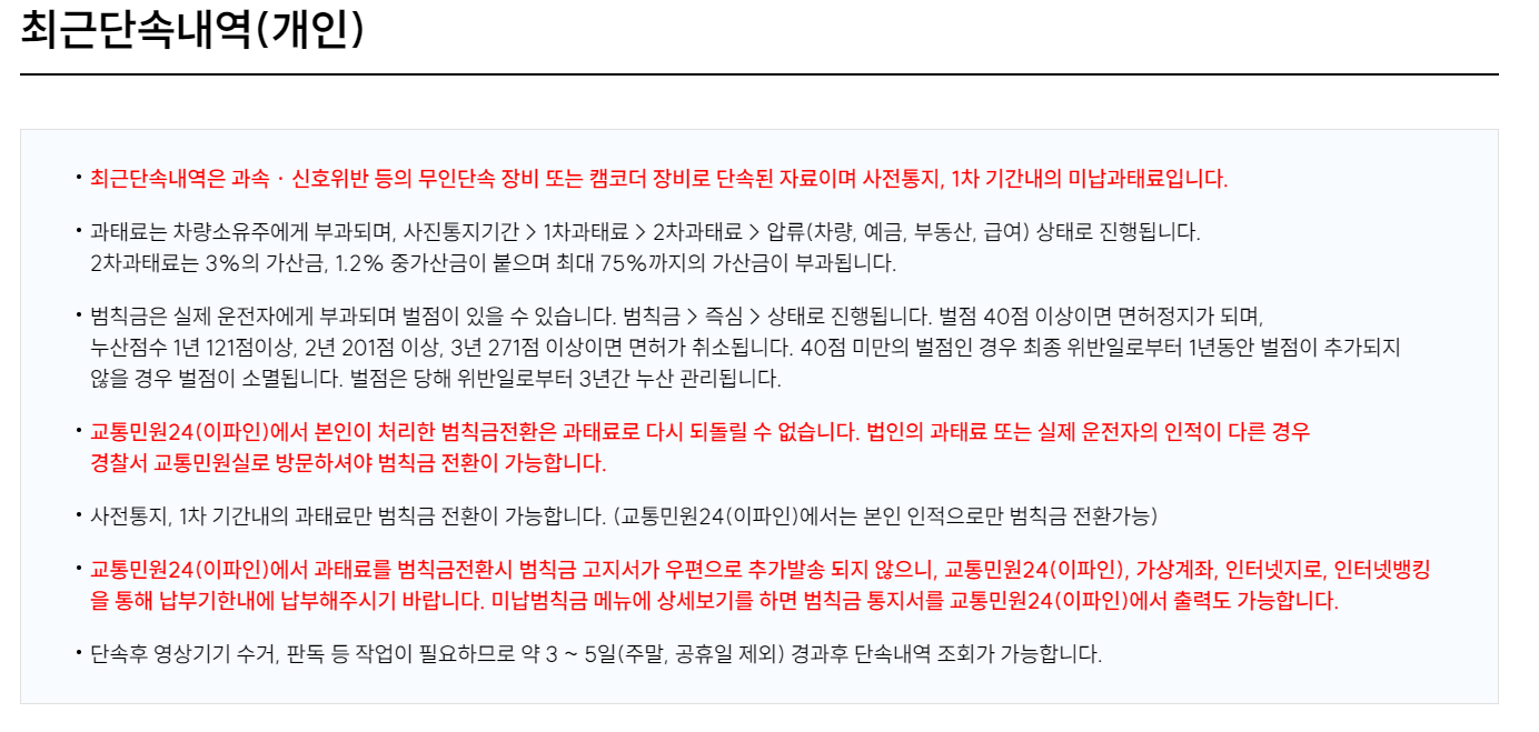 모두가 궁금한 속도위반 범칙금 과태료 사전 확인 (법인 가능)
