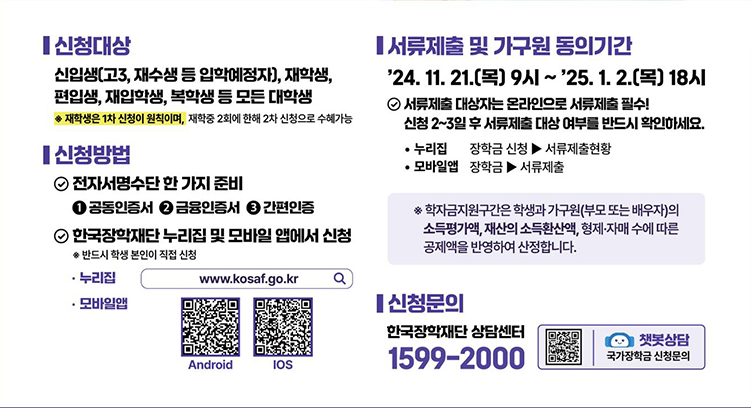 한국장학재단 신청 기간을 놓치면 장학금을 받을 수 없으므로, 학기 시작 전에 반드시 공지사항을 확인하고 미리 준비하는 것이 필요합니다.