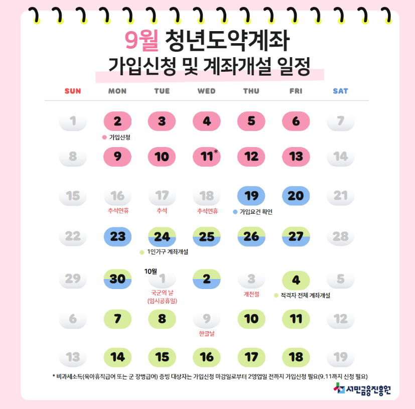 1인 가구는 9월 24일~10월 18일, 2인 이상 가구는 10월 4일~ 10월 18일에 계좌 개설 가능하니 일정 참고 하세요.
