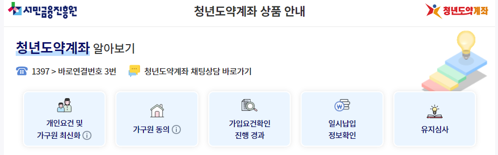 청년도약계좌는 취급 은행의 콜센터 또는 서민금융콜센터(1397)로 전화 문의 하실 수 있고, 서민금융진흥원 청년도약계좌 홈페이지로도 더 많은 정보를 확인하실 수 있습니다.