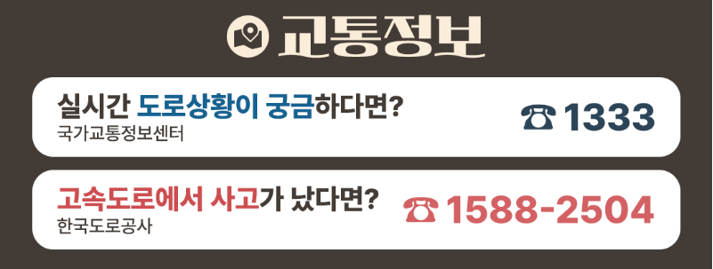 추석 연휴에는 교통량이 많아 도로 상황이 복잡해질 수 있습니다. 도로 상황을 미리 확인하고, 고속도로에서 교통사고가 발생했을 때 적절히 대처하는 방법을 알아두는 것이 중요합니다. 아래 정보를 참고하세요.