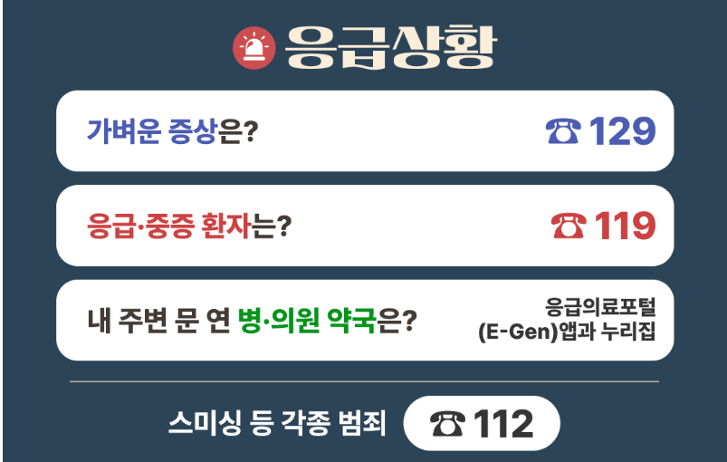 응급의료 상담: 응급 상황일 때, 어떤 조치가 필요한지 전화로 상담을 받을 수 있습니다. 필요시 올바른 대처법을 안내해줍니다.