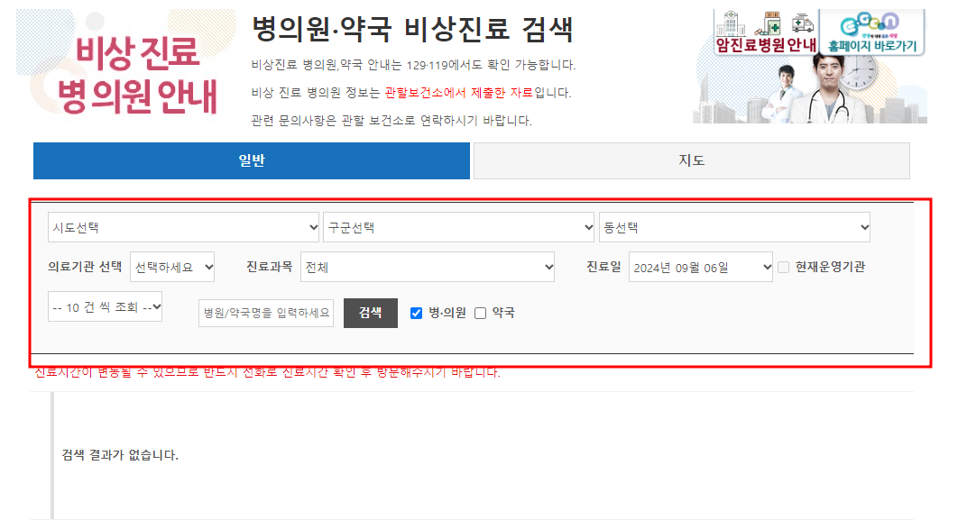 129 보건복지상담센터 휴일 병원찾기 24시 약국