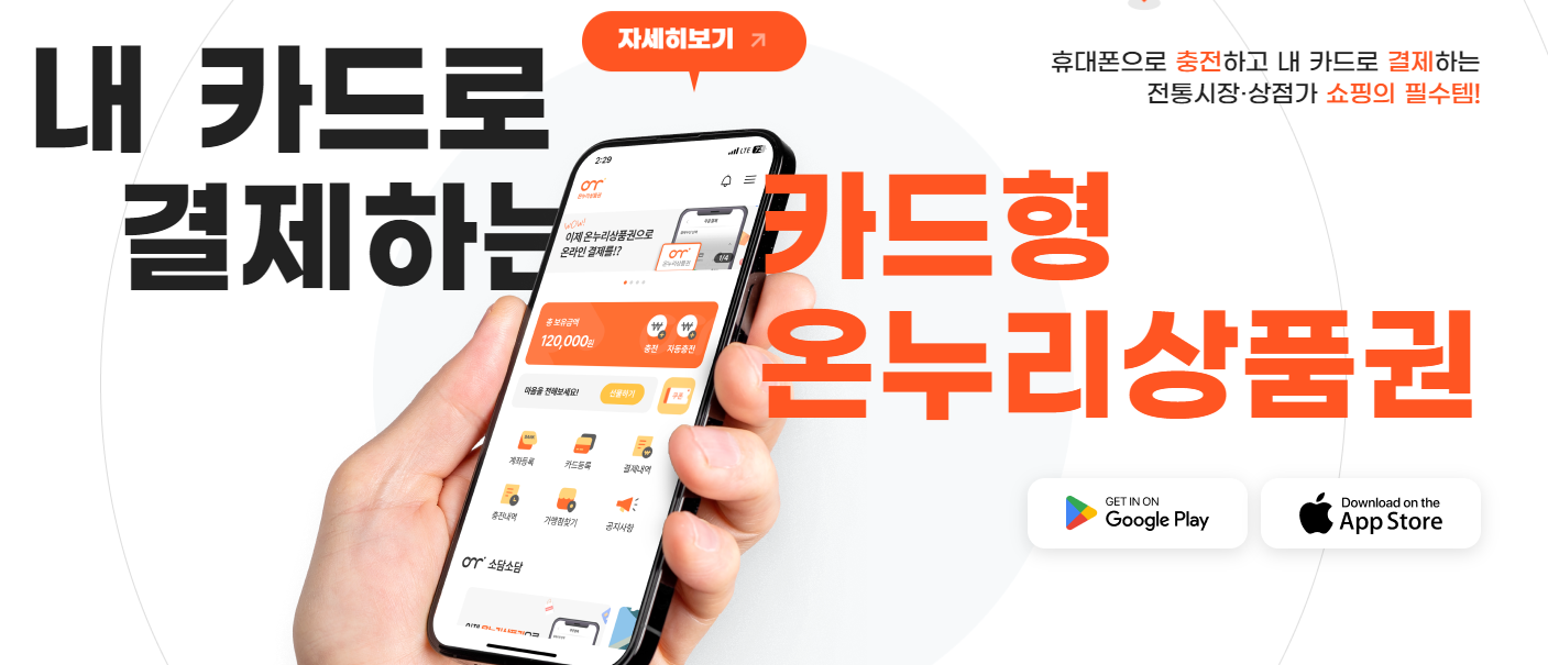 카드형은 온누리상품권 앱에 카드를 등록한 후 금액 충전 후 실물 카드로 결제하는 방식입니다.