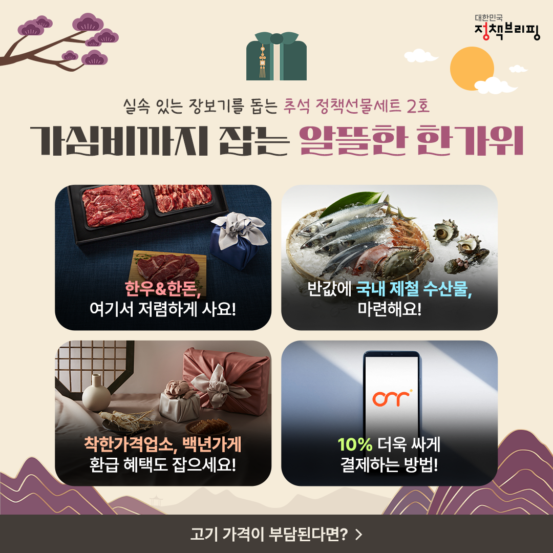 실속 있는 장보기를 돕는 추석 정책 선물세트 1호! 온누리상품권으로 '알뜰하게 장보는 법’ 알아봅시다.