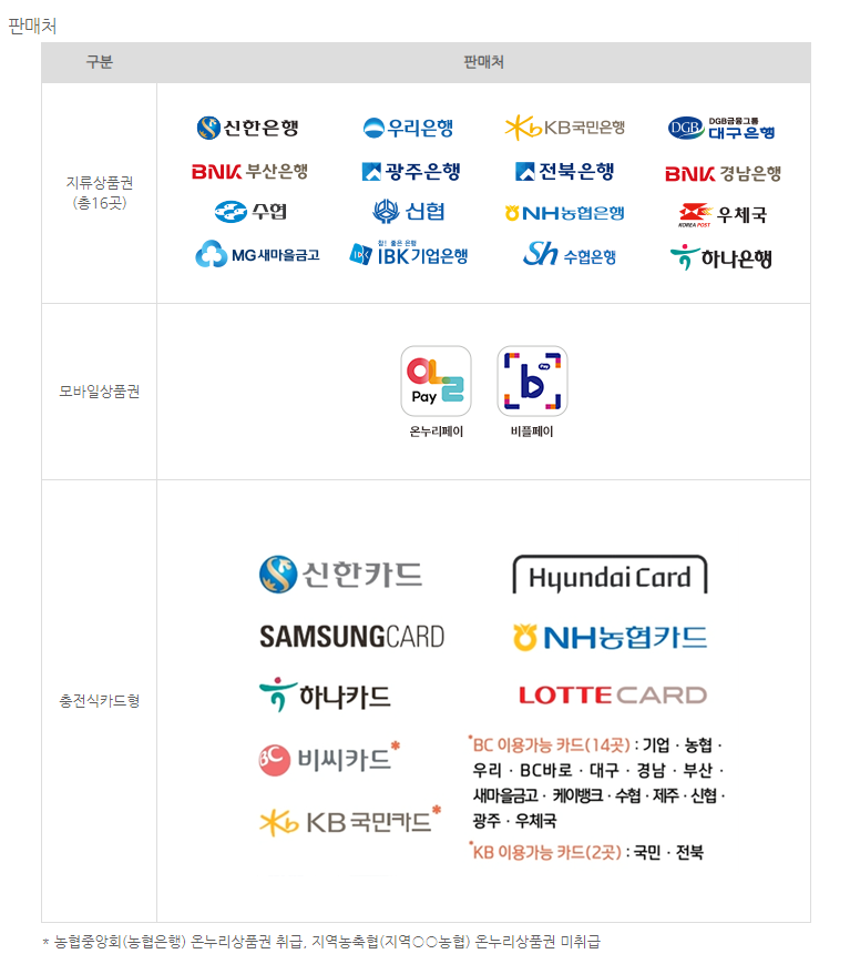 - 행사 카드사: 신한, KB국민, 우리, NH농협, BC, 삼성, 롯데, 하나, 현대