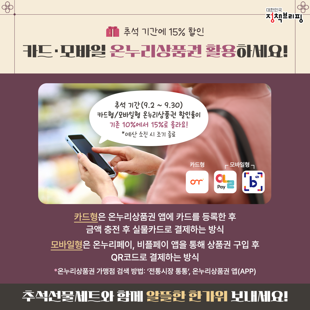■ 추석 기간에 15% 할인, 카드·모바일 온누리상품권 활용하세요!