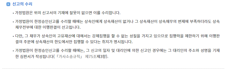 한정승인은 피상속인의 사망 후 상속 개시일로부터 3개월 이내에 법원에 신청해야 합니다. 이 절차를 통해 상속인은 피상속인이 남긴 빚이나 채무를 모두 상속받는 것이 아니라, 자신이 상속받은 재산의 범위 내에서만 책임 (상속 포기) 을 지는 것이죠. 상속인이 한정승인을 하게 되면, 채권자들은 상속받은 재산을 대상으로만 변제를 요구할 수 있습니다.