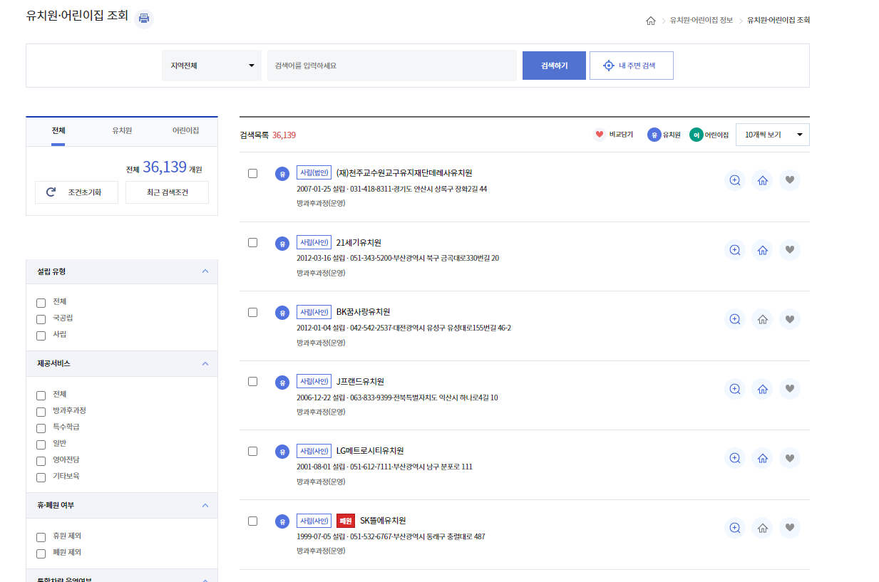 유치원 알리미는 전국의 유치원에 대한 평가 자료를 포함해 학부모들이 유치원의 교육 과정, 운영 방식, 그리고 시설 등을 한눈에 확인할 수 있는 서비스입니다.