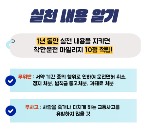 운전자라면 누구나 쉽게 참여할 수 있으니, 안전운전을 실천하면서 착한운전 마일리지로 혜택도 누려보세요!
