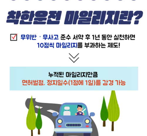 착한운전 마일리지는 안전운전 문화를 정착시키기 위한 제도로, 운전자가 일정 기간 교통법규를 준수할 경우 혜택을 받을 수 있습니다.