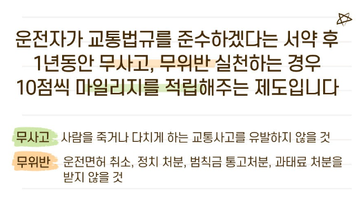 이 마일리지는 향후 교통 위반으로 벌점을 받게 될 경우, 마일리지를 사용해 벌점을 상쇄할 수 있는 방식으로 작동합니다.