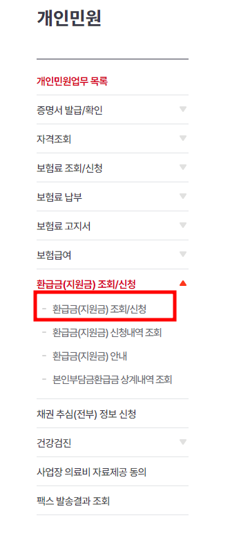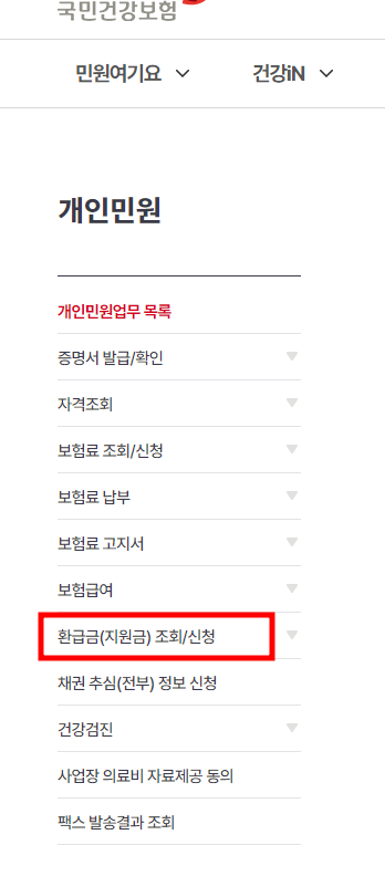 건강보험환급금조회 방법과 절차 - 홈페이지