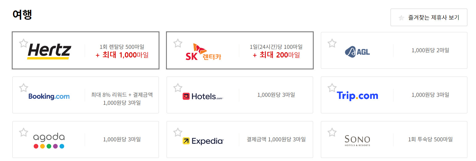 또한 항공권을 구매하는 것 외에도 호텔, 렌터카, 신용카드 포인트 전환 등 다양한 방법으로 마일리지를 쌓을 수 있어 활용도가 높습니다.